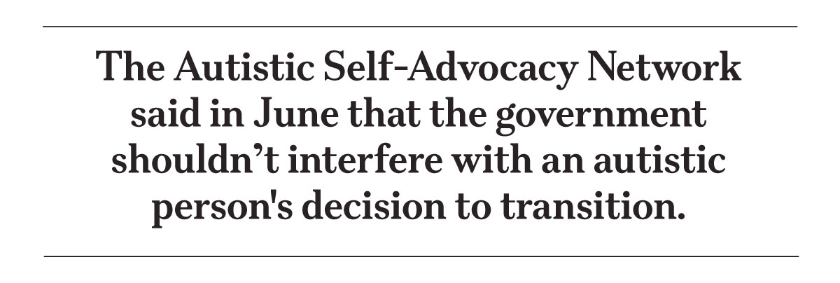 The Autistic Self-Advocacy Network said in its June newsletter that the government shouldn’t interfere with an autistic person’s decision to transition.