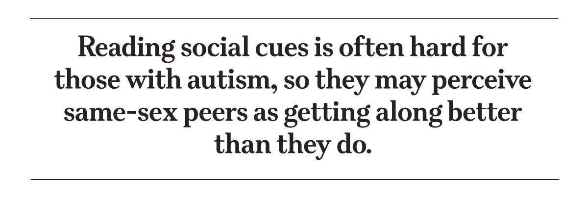 ​For example, if a boy with autism lacks stereotypical male interests, he may doubt he is a boy and assume he must be a girl. Reading social cues is often hard for those with autism, so they may perceive same-sex peers as getting along better than they do.